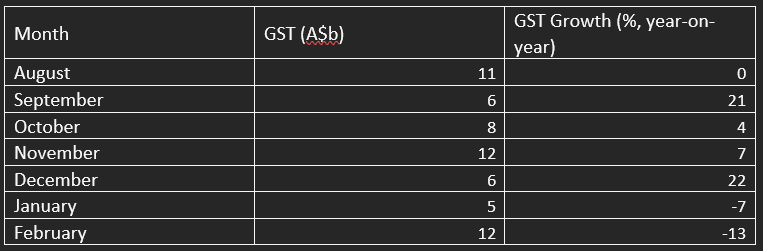 Australia’s GST collections plunge in February